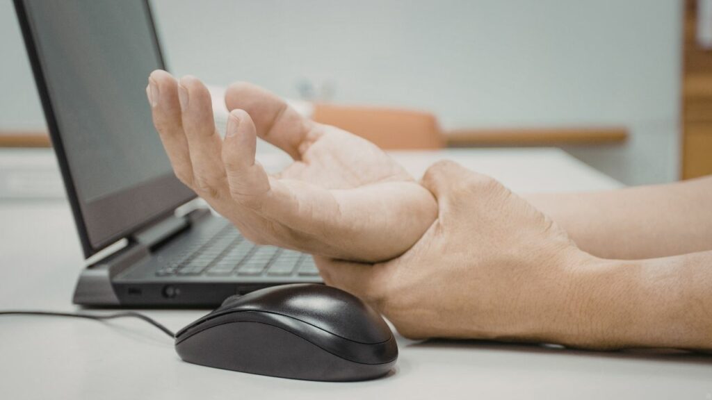 - Tendinites et syndrome du canal carpien : Liés à l’utilisation intensive de la souris et du clavier avec une mauvaise cassure du poignet.